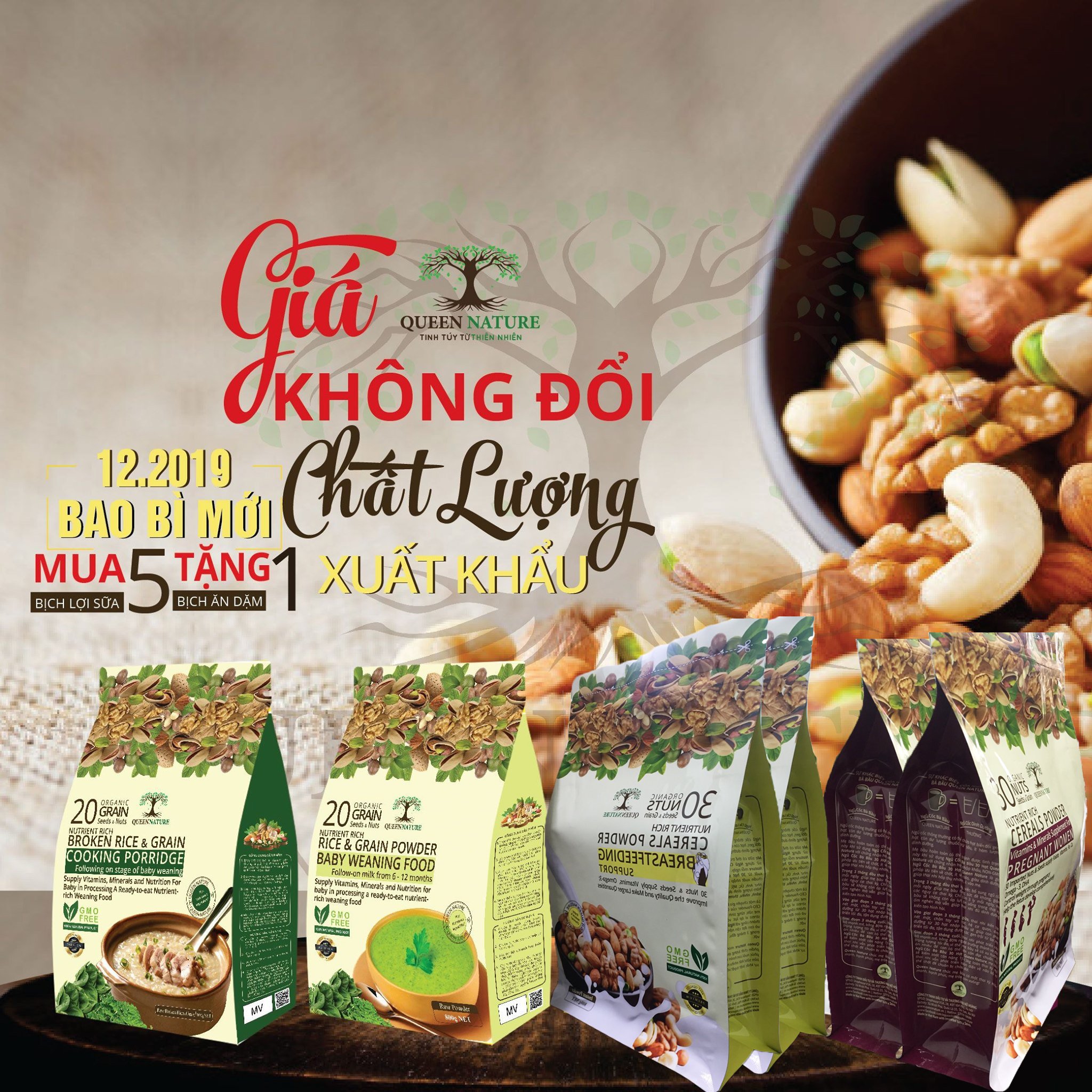 Từ 2021, Queen Nature đưa mẫu sản phẩm Ngũ Cốc Kích Lợi Sữa Queen Nature cho thị trường xuất khẩu vào trong nước, nên mẫu sản phẩm các mẹ nhận được sẽ gửi đi theo quy cách như hình bên dưới mẹ nha!